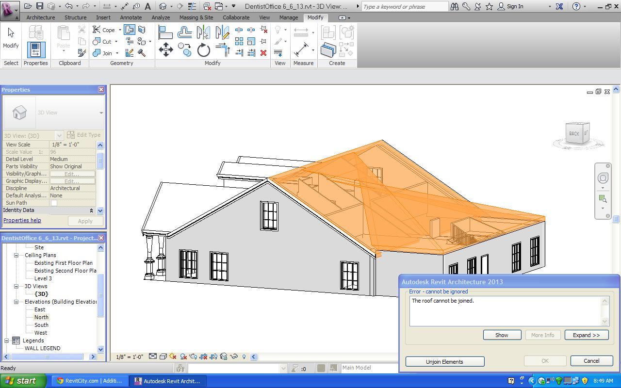 Hi guys. I'm having an issue connecting the roof of an addition to a dentist office with the roof of the as-built structure. I keep getting an error message that says "part of the roof to be joined misses the target face", when using the roof join command. This command has worked for several other roofs on the structure , but not this one. Any help would be greatly appreciated.