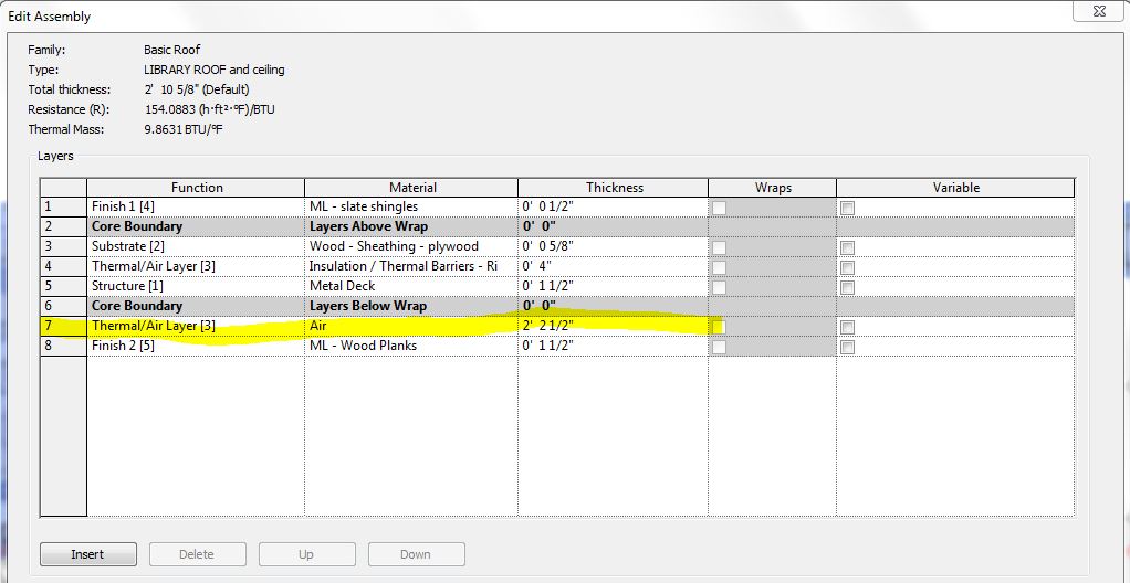 I have a roof section that includes a ceiling as part of the roof construction. (I know there are a lot of opinions about the whether or not you should do this, but this is really the only way I could get the model to work out.) My question is, how to I make the "air" layer transparent so that I can see the wide flange structural members supporting the steel deck. If you look at attached drawing 1, the steel beams should be shown in the yellow highlighted area. However, I can't get the air layer to not be opaque. Even if I change the material to 100% transparent, nothing changes. I've attached the roof construction box as well as the material editor. I'm not sure what I'm missing.