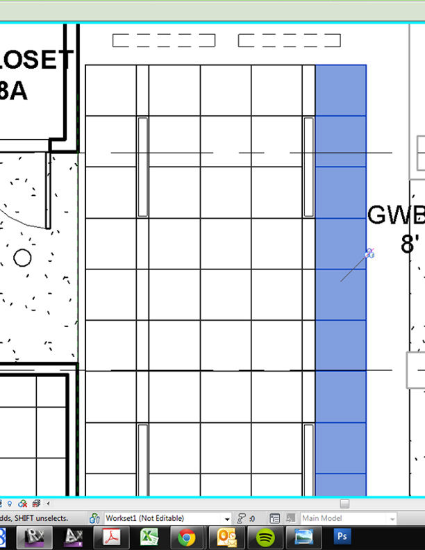 I have a 2x2 ACT ceiling in which we are inserting 4'x6" lighting fixtures. Every where the fixtures are placed, two pieces of grid spaced at 6" flank the light and run the length of the assembly (see jpg attached) with 2' panels contiued on either side. I don't know how I would accomplish this with a simple model pattern on the ceiling face, being that the 6" strips aren't always in the same place. I've created the effect by making multiple ceilings, abutted everywhere I need the 6" strips (see selected portion highlighted in blue in the jpg).
