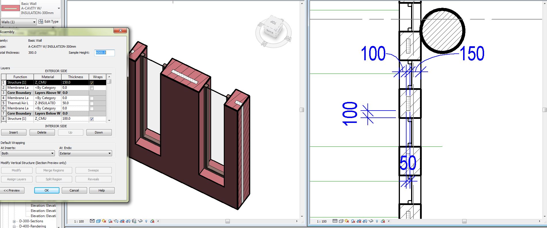 the 100mm thk wall overpowered the 150mm wall and wrap around the insulation. what I need is the 150mm wall to wrap whenever I insert an element such as window or door. Thanks for advise.