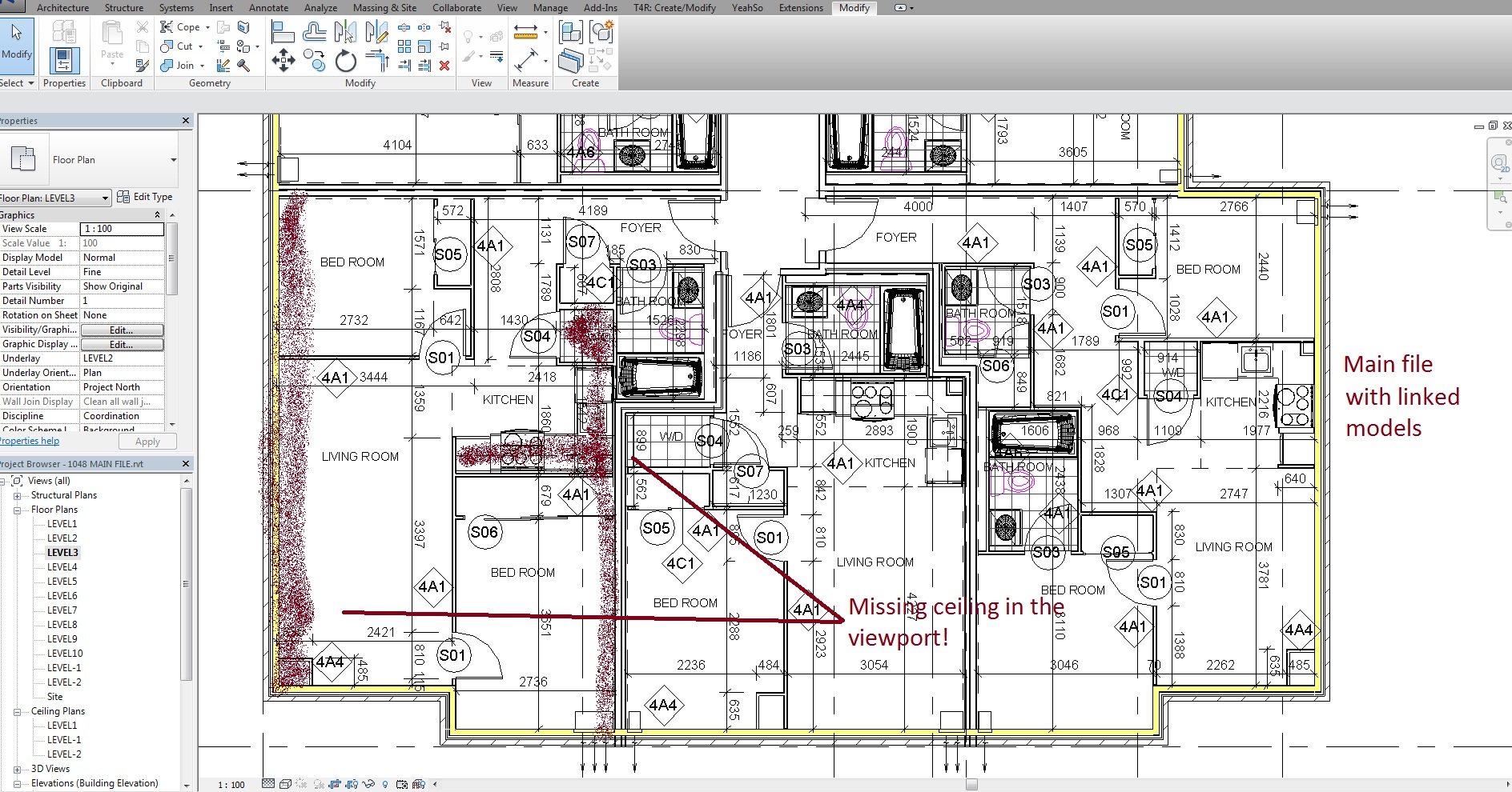 Then after I linked the unites to the main file, and linked the views to the main viewport, I couldn’t see the ceiling underlayed! I tried to underlay in the main file, but it didnt work as well! (see attached)