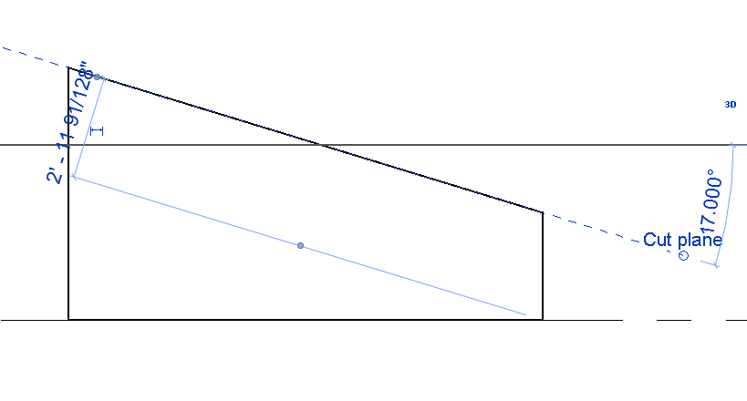 WWhub, I can't find how to make a cut plane... and would I be able to cut each wall segment with a differentcut plane slope? For example in your image, the 1st slope would be at 17º but the second at 25º? In your exampleeverything seems cut at the slope and direction.