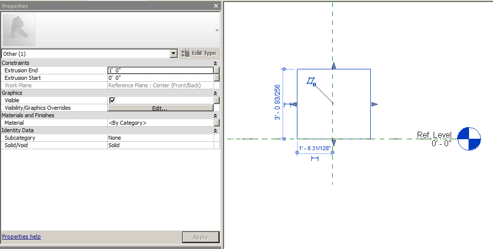 OK I am trying to create a window family. I drew a rectangular form in plan to provide basis of a mullion. I have read that extrusions are tied to the plane on which they are created. But when I go to ref level floor plan I cannot copy or move mullion. Is there a certain way of moving or copying extrusions when creating families? Or have I made a mistake with constraints or parameters?