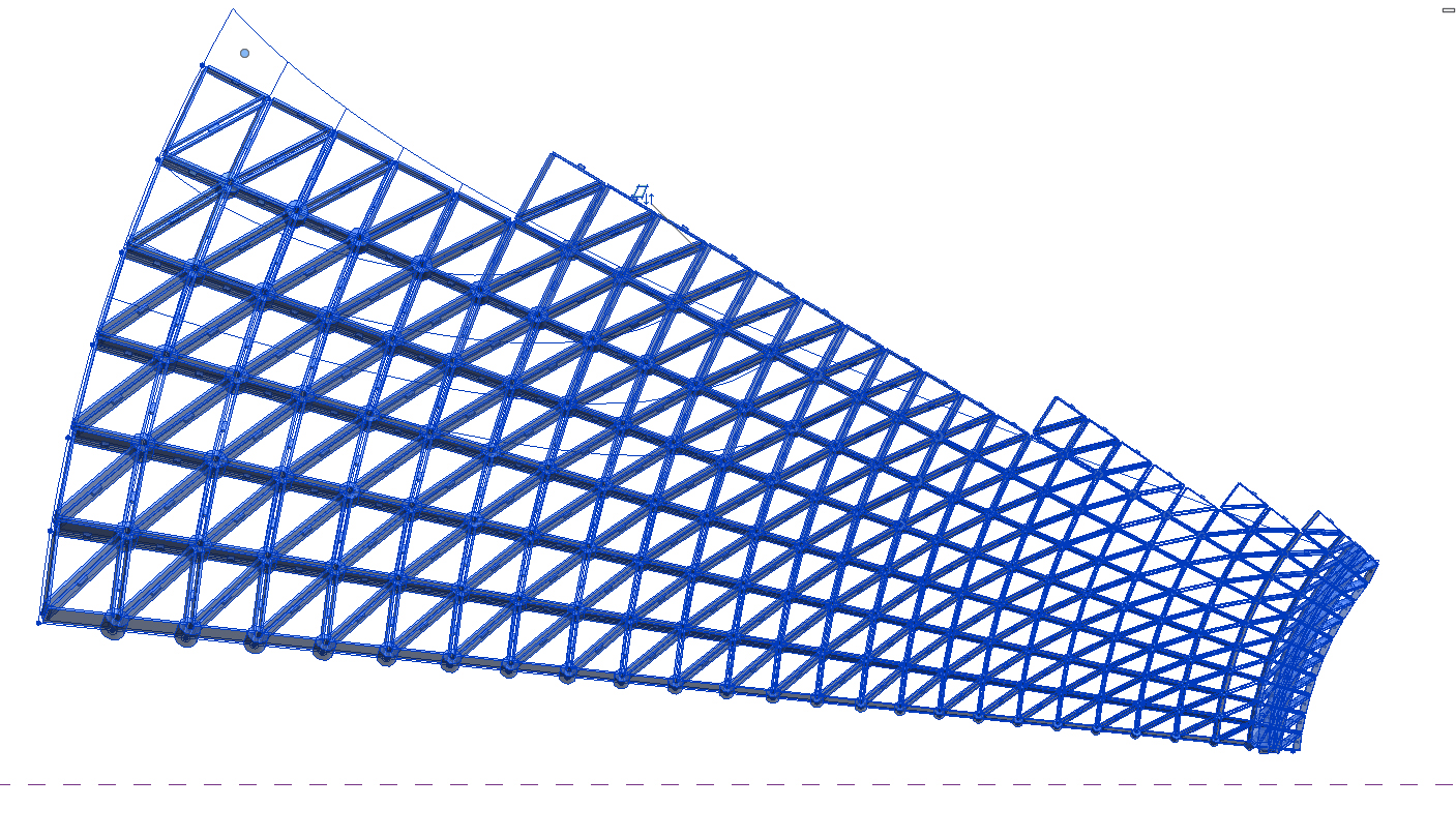 Hi,For a university project I am designing a curved roof gridcell structure.I have made the curved surface in the massing environment and used voids to cut the desired roof face out of the larder surface. I than divided the roof surface with custom intersect lines to get a non uniform grid, so far so good.I than made 2 adaptive component families, one the straight structural members and the other the circular node. I loaded these into a square based pattern family and placed it on the divided surface, after a bit of thinking revit gave me what I wanted as seen in images 1 and 2. You can see that the pattern based family instances are trimmed down by the void same void used to cut the mass surface.However when I loaded the mass family into a project file the pattern families were no longer cut even though the surface bellow them is still cut as seem in image 3.I have tried to figure out why, but I am at my knowledge limit.Does anyone know why this happens and how to fix it?Thanks
