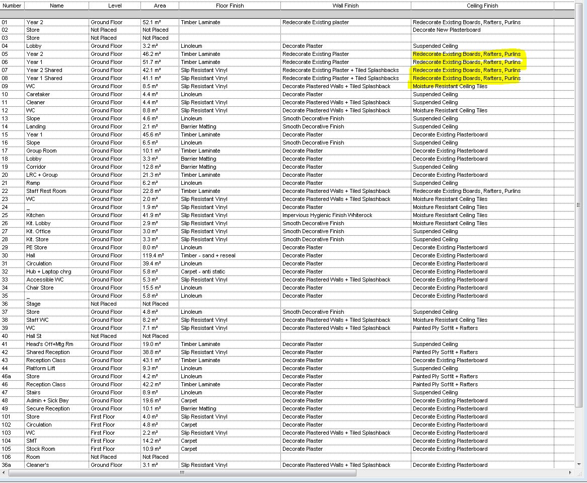 Room finish Schedule showing Deleted Rooms |