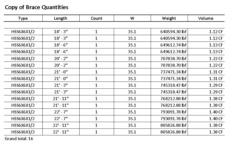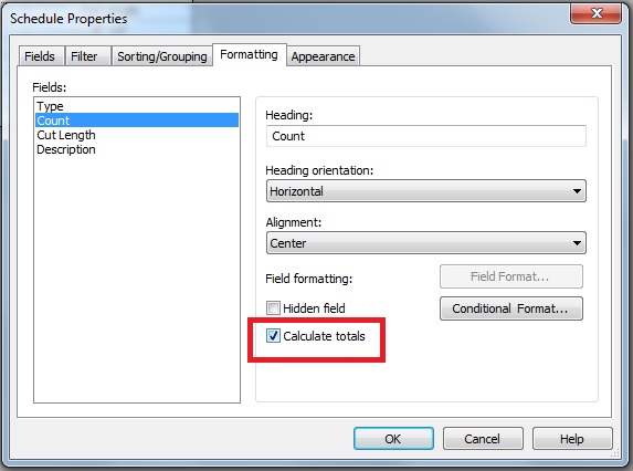 I've attached a copy of one simple schedule that I'm trying to throw together for vertical braces. I added a calculated parameter for the beam weight. I have selected "Grand totals: Title, Count and Totals" in the Sorting/Grouping tab, but I only see the count added up at the bottom.