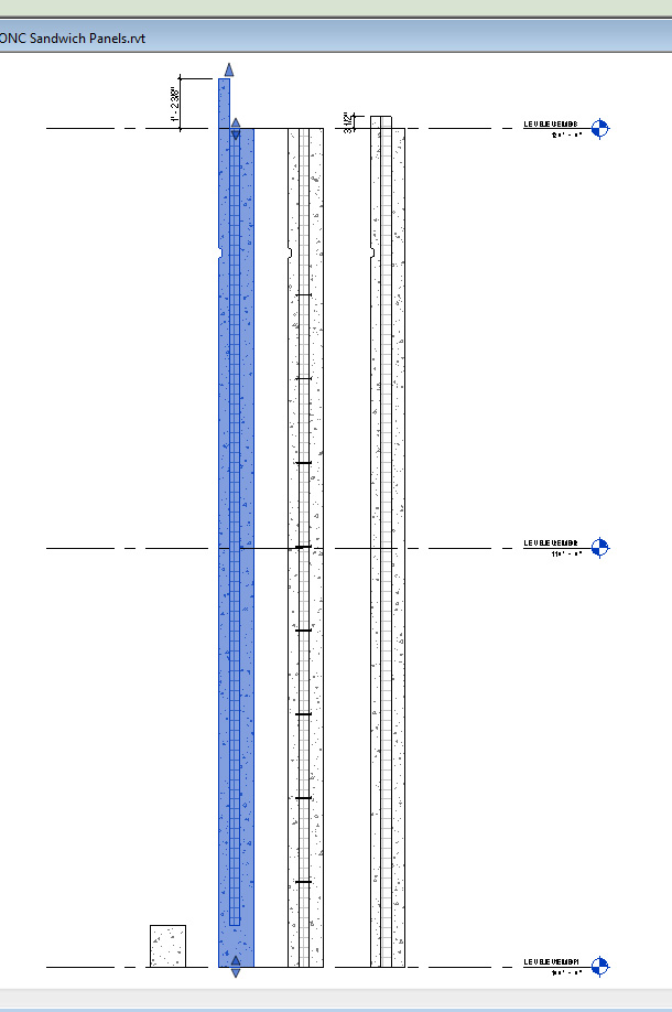 Some of the major areas that I'm trying to figure out include: allowing the insulation to taper in towards the top of the wall to allow for more meat of the outer layer of concrete to be used as a parapet, have all 3 layers of the wall adjustable vertically (revit won't let you just unlock all the layers and move them independently, the most you can do is 2), and lastly have the walls inner layer of concrete wrap at certain door openings (at overhead door openings, not single metal door). Unless the best approach is to add hatching to the door family so it overlays the wall when cut in section. The concrete also wraps at the bottom of the wall but I've already figured out how to make that happen using the split and merge commands.