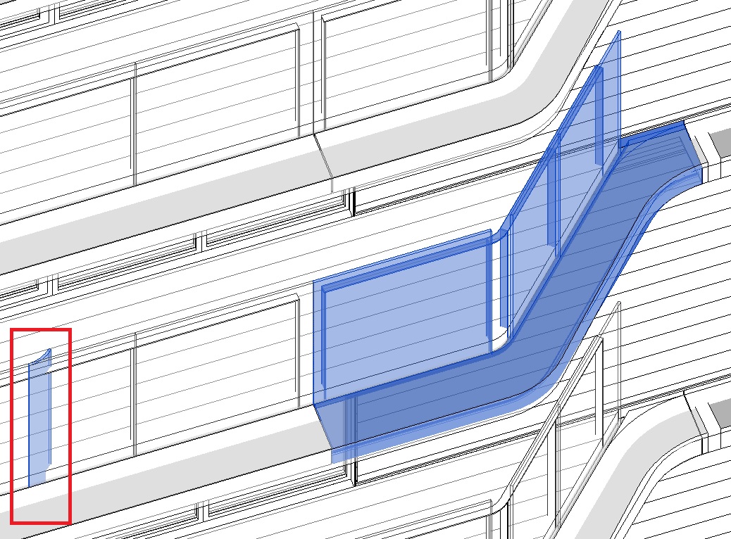 My colleagues are using a curtain panel family to represent a balcony assembly, as shown in the image. They have a section of curved glass, modelled as an extrusion in the curtain panel family, they want kept seperate and switchable via visibility settings. The problem we're experiencing is that though the extrusion displays in the correct position in the family editor, it becomes displaced when loaded into the project (shown in the image) - very odd. This happens even if the extrusion is locked to ref planes set out with a locked dimension to the 'centre' ref plane in the curtain panel family.