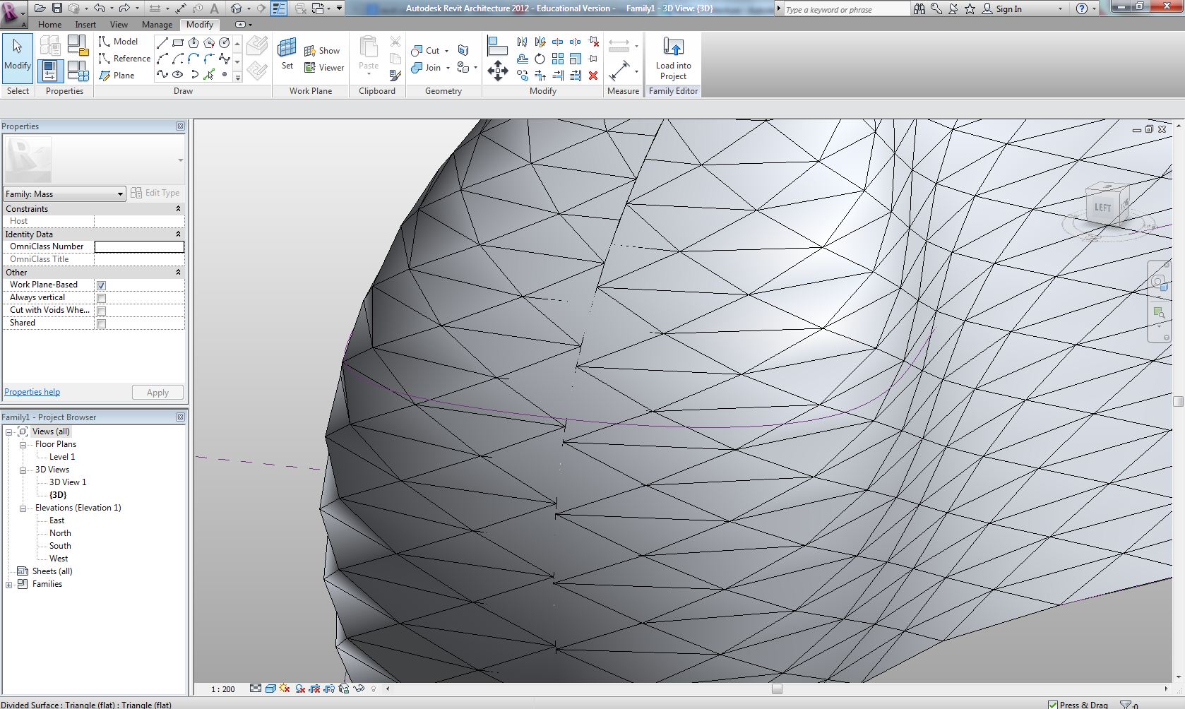 Good day everyone, I'm trying to figure out a small problem I have with creating a Blob-like form. I've created a mass by creating a form out of six (two per level) reference lines. The Form comes out nice, but whenever I divide the form, the two created surfaces don't align with eachother. Therefore, when I create curtain walls or patterns on this form, they don't match up either. I have attached two images and a Conceptual massing file with the mass inside. I Hope someone can provide me with a solution for this problem. Thanks in advance, Leo