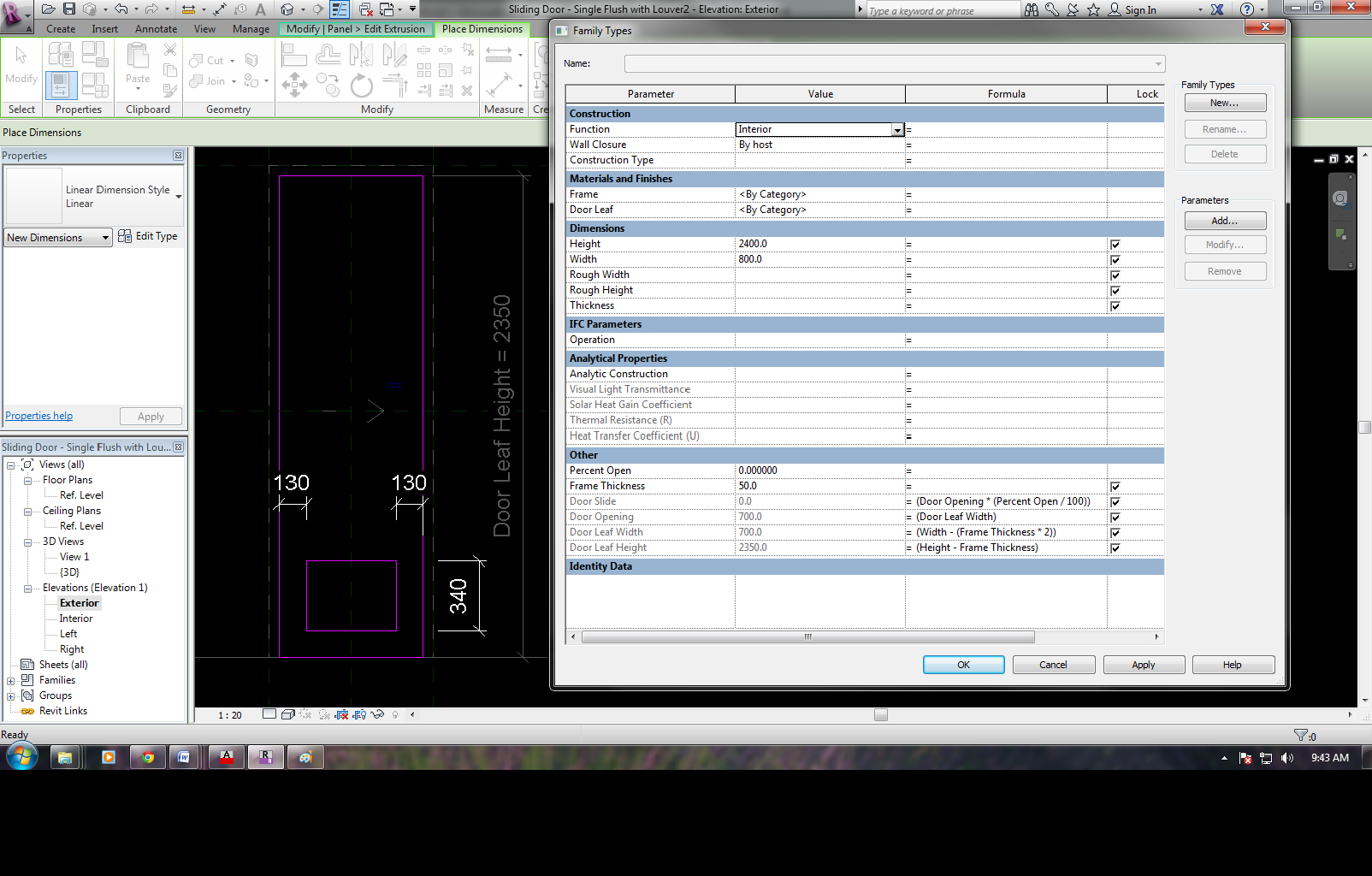 Please help me with my sliding door. I'm making one that slides open depending on how much percentage the user wants. My only problem is the louver. I can only make it (door panel) slide open without the louver, but when I place the louver and try to slide it open, a message pops out saying "Can't make the extrusion". I must be missing something here. The problem starts when I edit the extrusion of my door panel and add the void for the louver at the lower part of the panel. Adding the void is successful but when I try to slide it open, I can't seem to find where I missed and what solution to make. Please help me Sir(s).