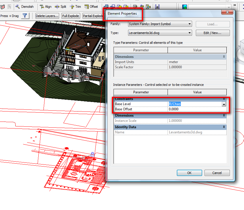 I also imported a DWG into revet, this was to use the levels of the site and use the survey features which was contained in the DWG file. I have modeled the site and the trees onto my Revit topography, but would like to know how to 'bind' or 'attach' the dwg lines onto the Revit topo. The DWG lines are shown to be floating about the topo in the image which I have attached. Cheers Tim