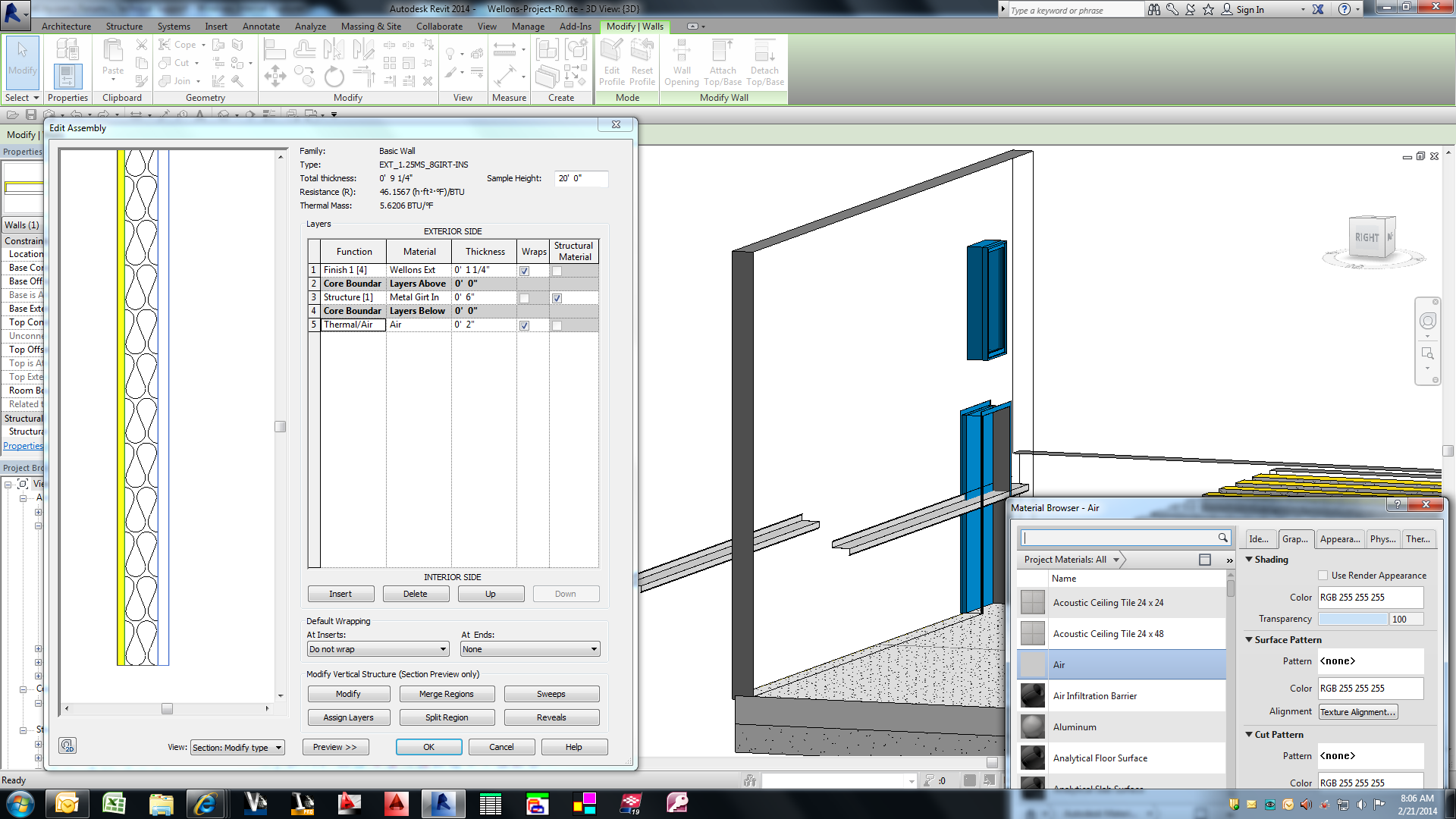 Intent: To see only 2" of the 8" girt in the wall fron the inside in a 3d view. Marketing wants shaded views.