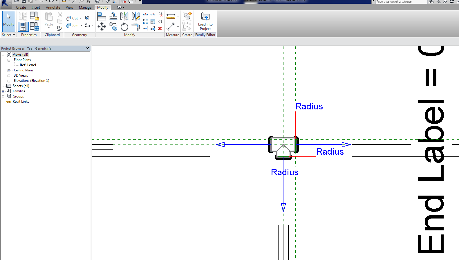 I wish it were that simple. I can only select the intire fitting for some reason. There are no lines just an object. It is the generic tee fitting if that helps.