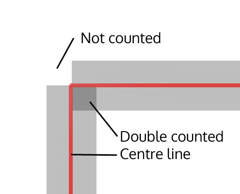 Hi, just wanted to pitch in to say I've been having the same issue and have run tests that verify that the centre line is used for calculating the area of every layer in a given wall. In my case a ran tests on a 4m x 4m box with a 400mm thick wall - the schedule returns results based on a length of 4400mm - the wall length plus 200mm to the centre on either corner. This means that when you miter the joins, the schedule ADDS material to the external layers and SUBTRACTS it from the internal ones ie. if you don't go through the miter process, you'll have estimated too much plasterboard and not enough bricks! You can see in the attached image that the insulation value is almost the same, as it is closest to the centre of the wall. The left box (blocks) is mitered, the right box (brick) is butt joints. Have attached a diagram for clarity.