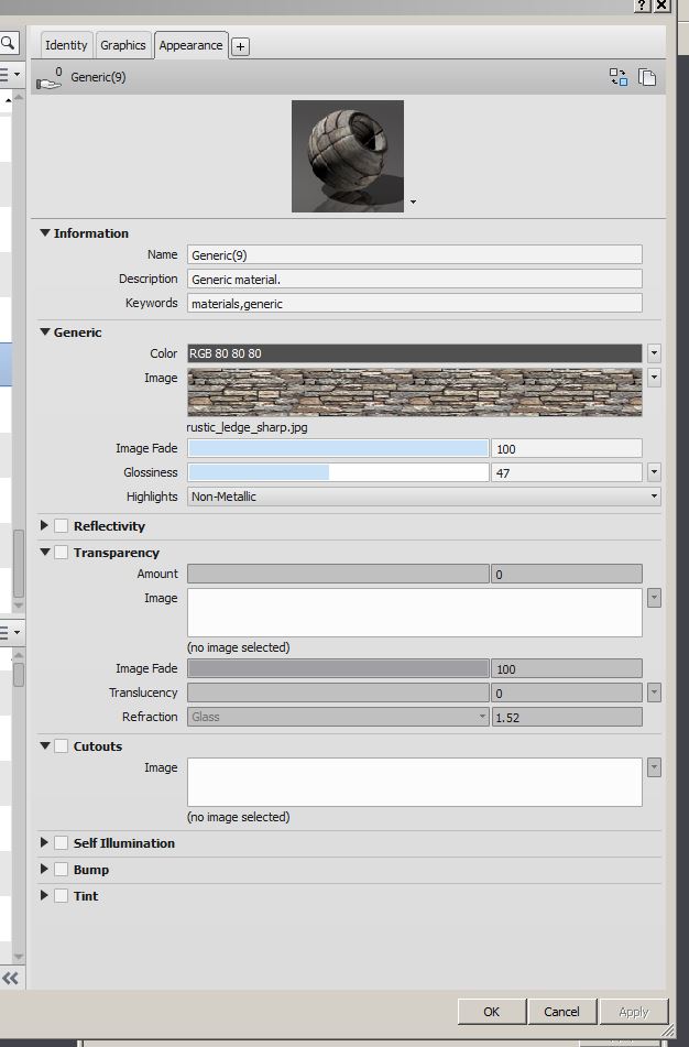 I am creating some walls etc I want the floor plans in realistic view. But the basic windows show the wall material at their sill . (see attached file)
