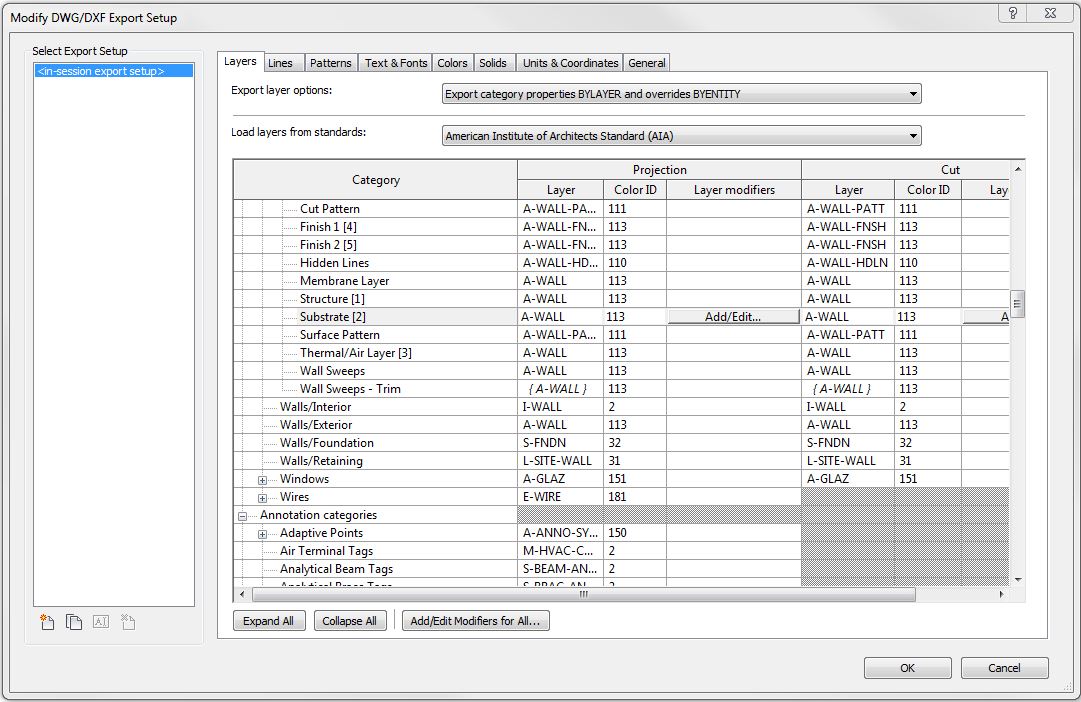 I have done so. the problem I am having is the subcategory "common edges" seems to be the only one that goes through the export. meaning, in the Cad dwg I see the common edge layer and delete it thinking that the structure layer is beneath it. when I delete the "common edge: layer there are no other lines beneath that line