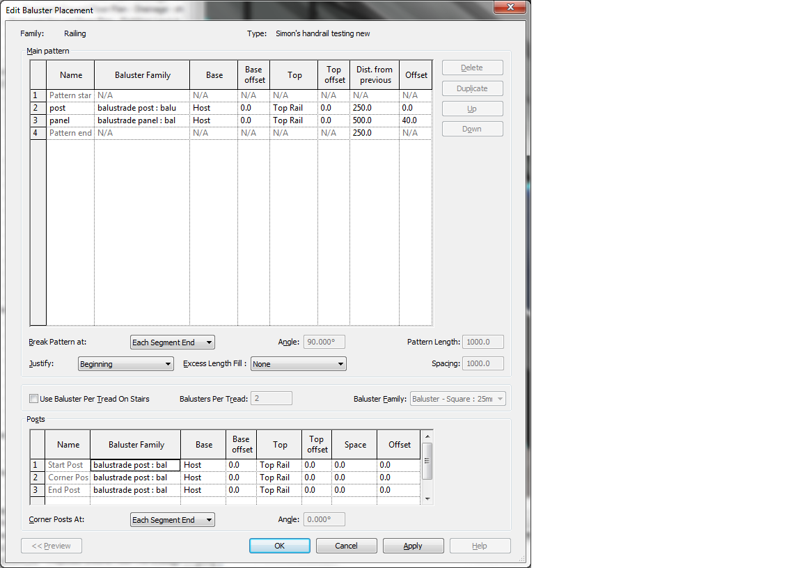 Hi Sorry that last post didn't make a lot of sense. What I meant to say was in my first try i had a post with a panel to the side of it. and the spacing at 1000mm. But now i have two separate families a post family and a panel family. but i still have the same problem it either misses one out at the end or overhangs the corner.