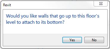 When you have your level 1 walls in place and when you model level 2 floor, you will get this message (see pic). If you modeled your level 2 floor before walls, you can enter floor edit sketch mode and without making any changes exit from there clicking on the green check mark – you’ll get the same message.