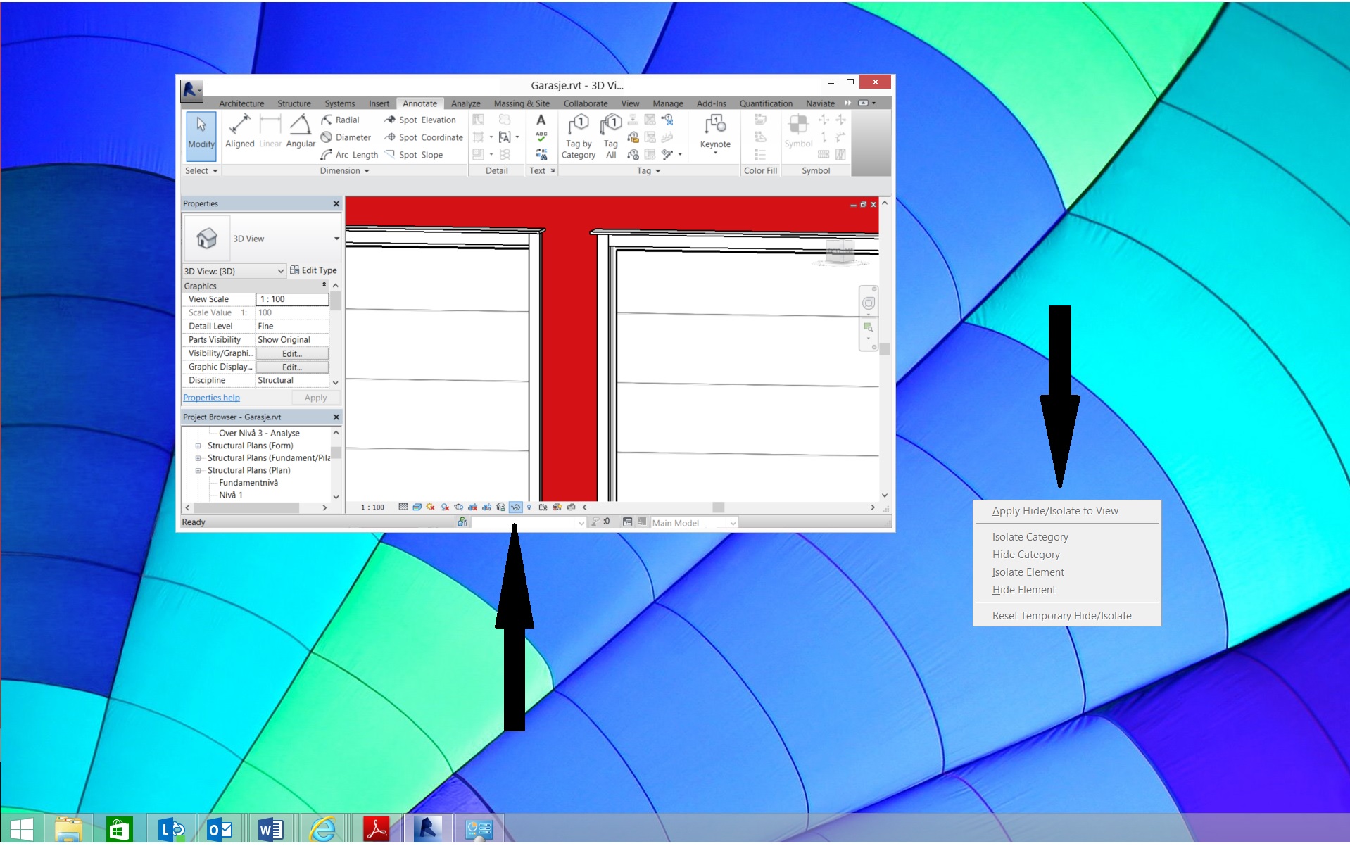 So, I have my laptop hooked up to a docking station connected to two external monitors. When I'm using Revit on monitor number 2 or 3 I experience the following problem: When I for instance hit the "Temporary Hide/Isolate"-, "Visual style"-, or "Detail level"-buttons the menus doesn't appear when Revit is maximized. When I'm not in maximized mode, the menus does appear, but not where they are supposed to. See my attached jpeg. Does anyone have an idea as too how to fix this?