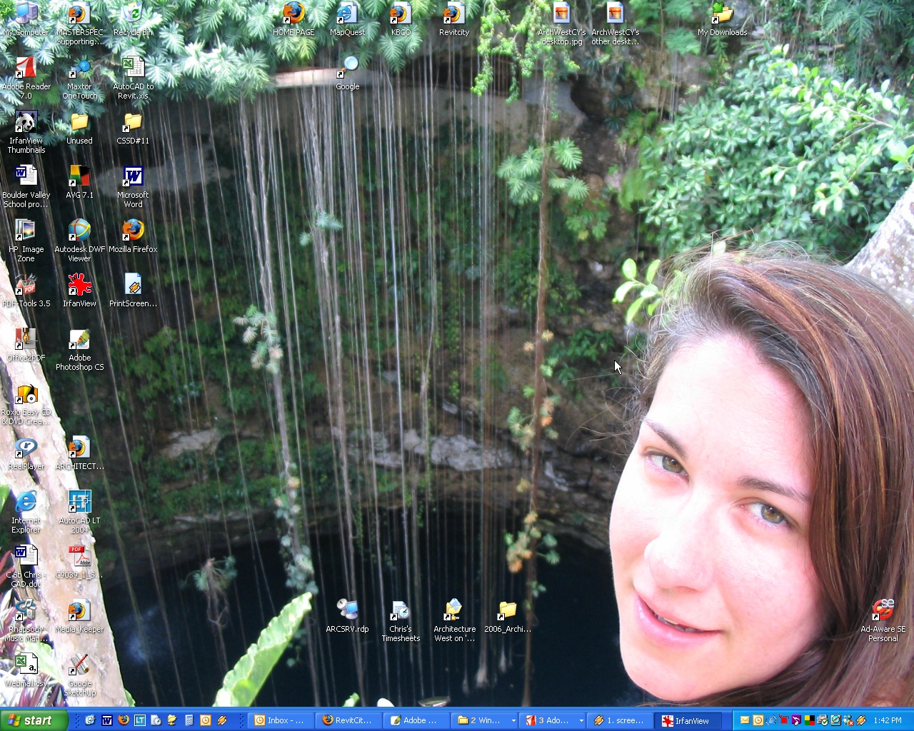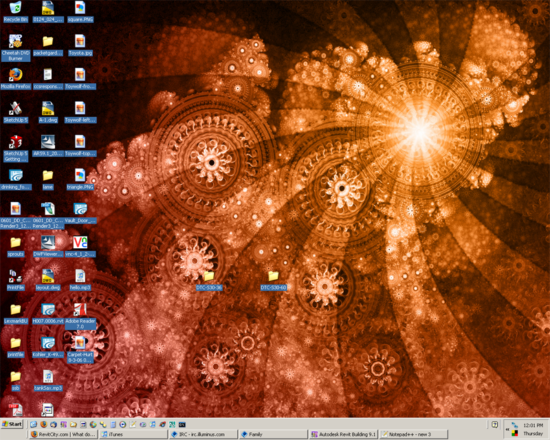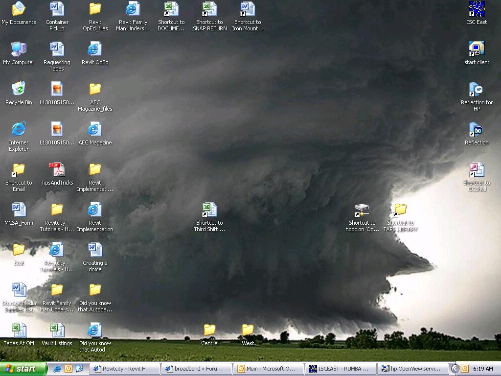 Just learned about Revit City today. Looks like cool stuff going on. My desktop is a picture of fire I took while camping last weekend, it spans across the 2 monitors I have at work. Speaking of which does anyone know of an efficient way to work with dual monitors w/Revit? wt--window tile is nice but i get alot of narrow view screens. Perhaps this deserves its own post elsewhere.