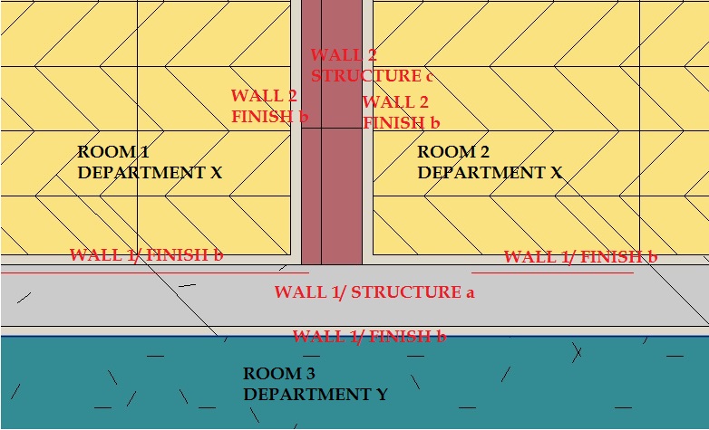 Wall 1 and 2 are existing walls. I want to demolate just the finishes (finish B), and i want to know the quantity of that.