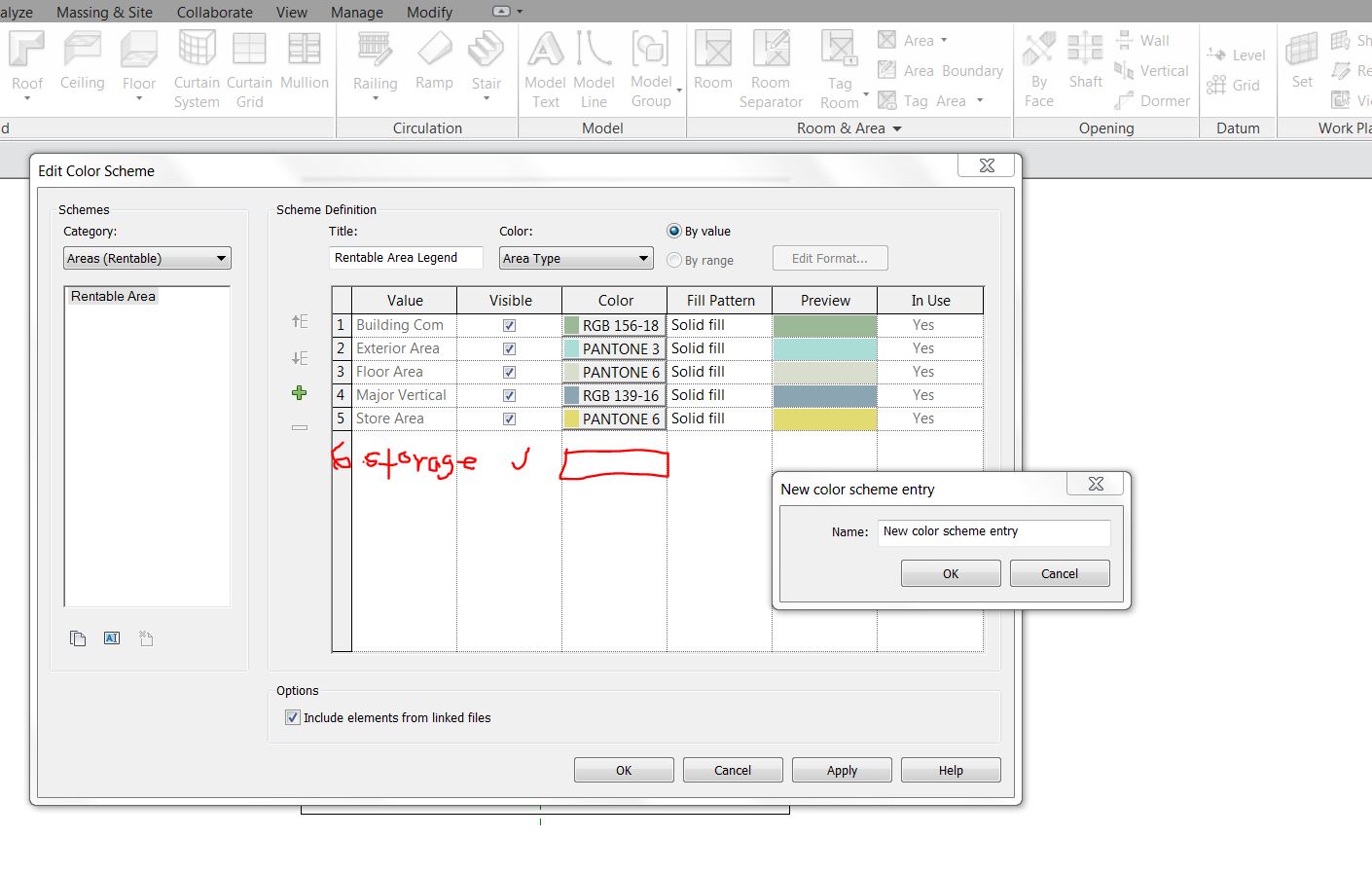 So I just want to add one more line in this area scheme. Like the pic Im posting. But I type in a value. ie I want to make a storage room area color. but it just tells me, "invalid input" no matter what I type. numbers or letters etc.
