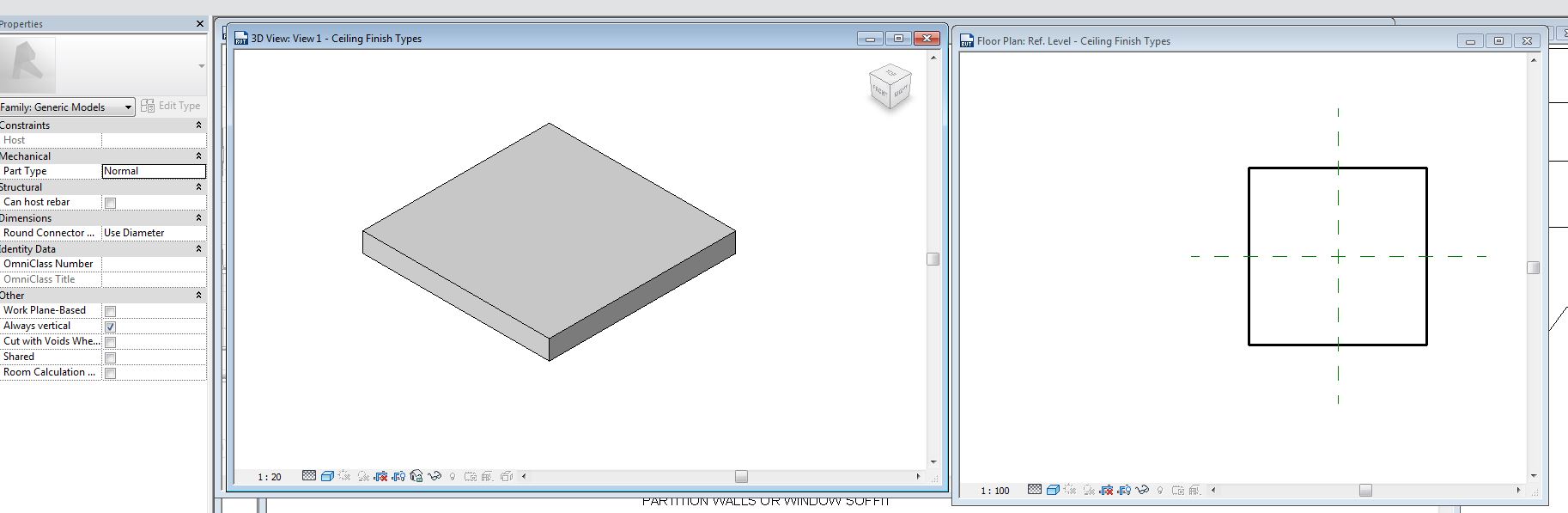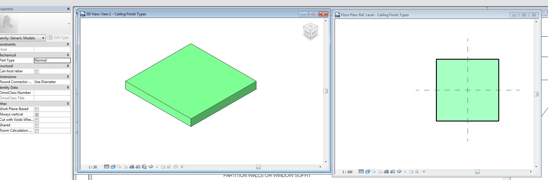 here is second ceiling finish option showing up in both 3D and plan view.