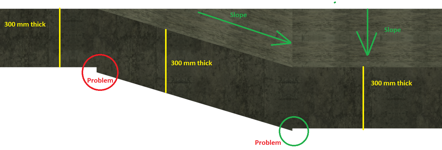 WWHub, if we make slab thickness 287 it will effect the quantity schedule...any alternative solution as it may occure anywhere where to elements join in slope.