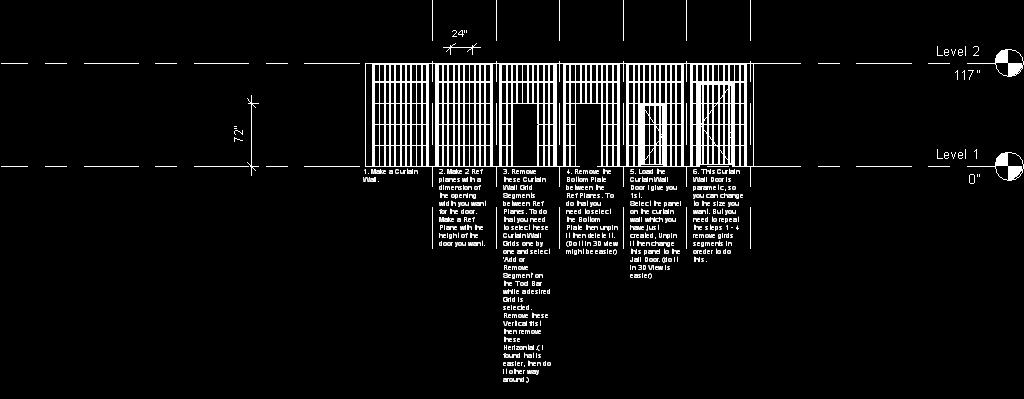 3.It is a mixture of curtain wall system and in-place model. Using curtain wall system to make the bars wall, then create an opening on the bar wall to the size of the door you want. Then make the door using in-place model, which fit the size of the opening on the bars wall.
