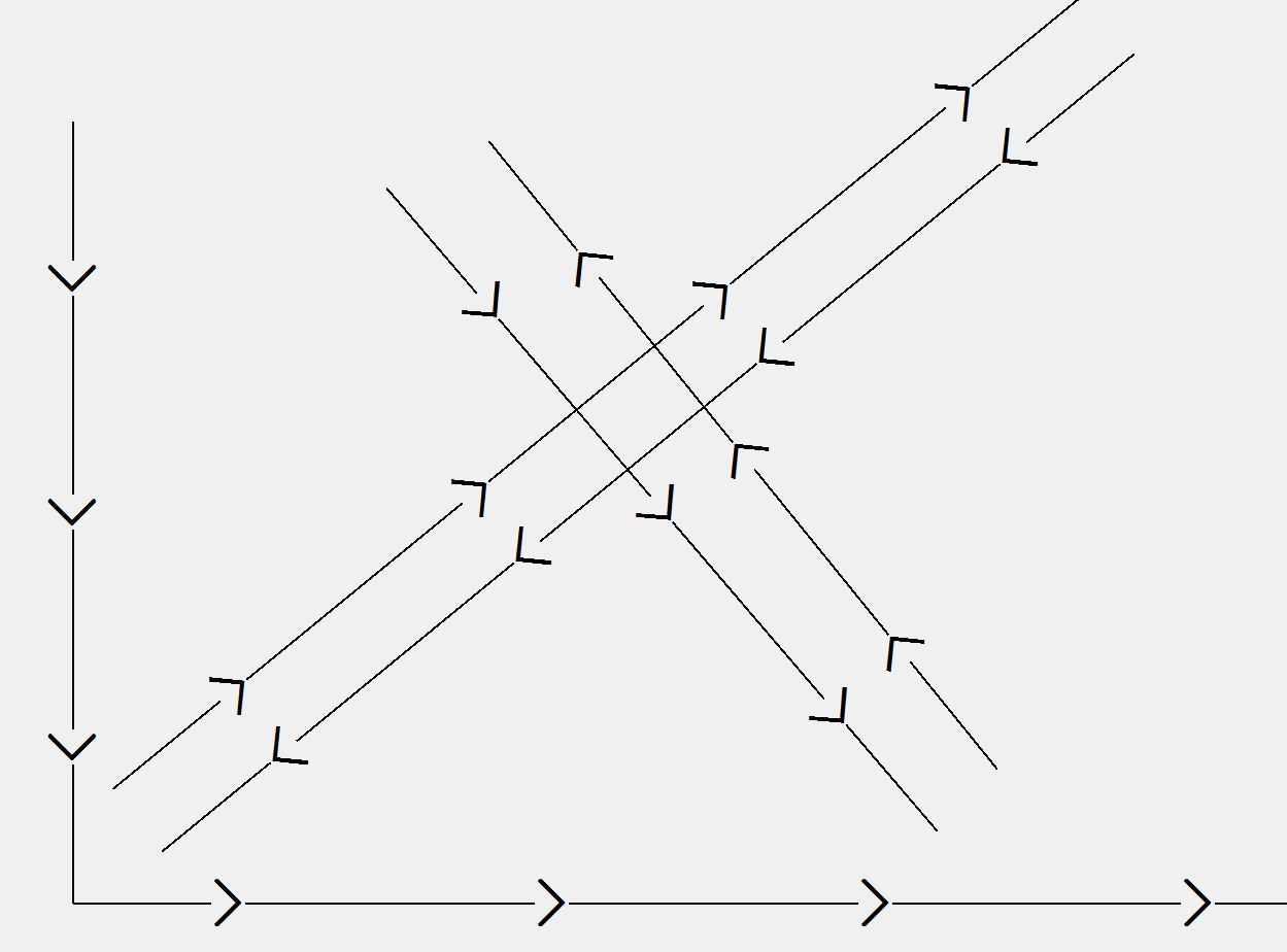 1) The symbol for the Egress line '>' looks aligned when the line is drawn vertically and horizontally, but it's a bit low when drawn diagonally.