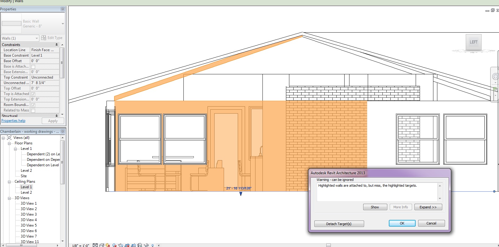 I cannot attach the walls to the vaulted ceiling or roof, when I select "attach top/base" I get an error message. I am using Revit 2013, and have attached a picture with the error mesaage.