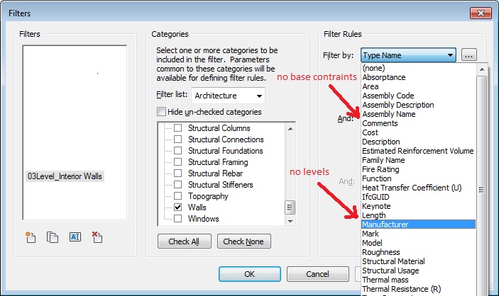 Forums >> General Discussion >> Revit Project Management >> VG Filtering Walls by Different Base Contraints