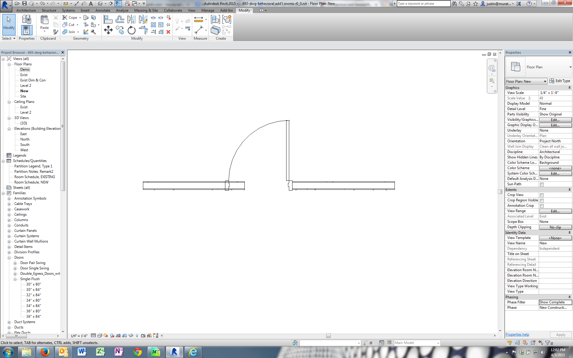 revit 2015 r2 renovation project I have a existing wall with some doors being infilled (in new const phase), then the wall continues as a new wall. I then want to place a door approx where the wall changes phase. The door won't cut both walls - if I place the door nearer the new wall, it gets cut, if I place it nearer the existing, that gets cut. If I delete the door instead of demoing then behavior is "normal" (as expected). I did a little test to show the behavior (see attached screenshots).