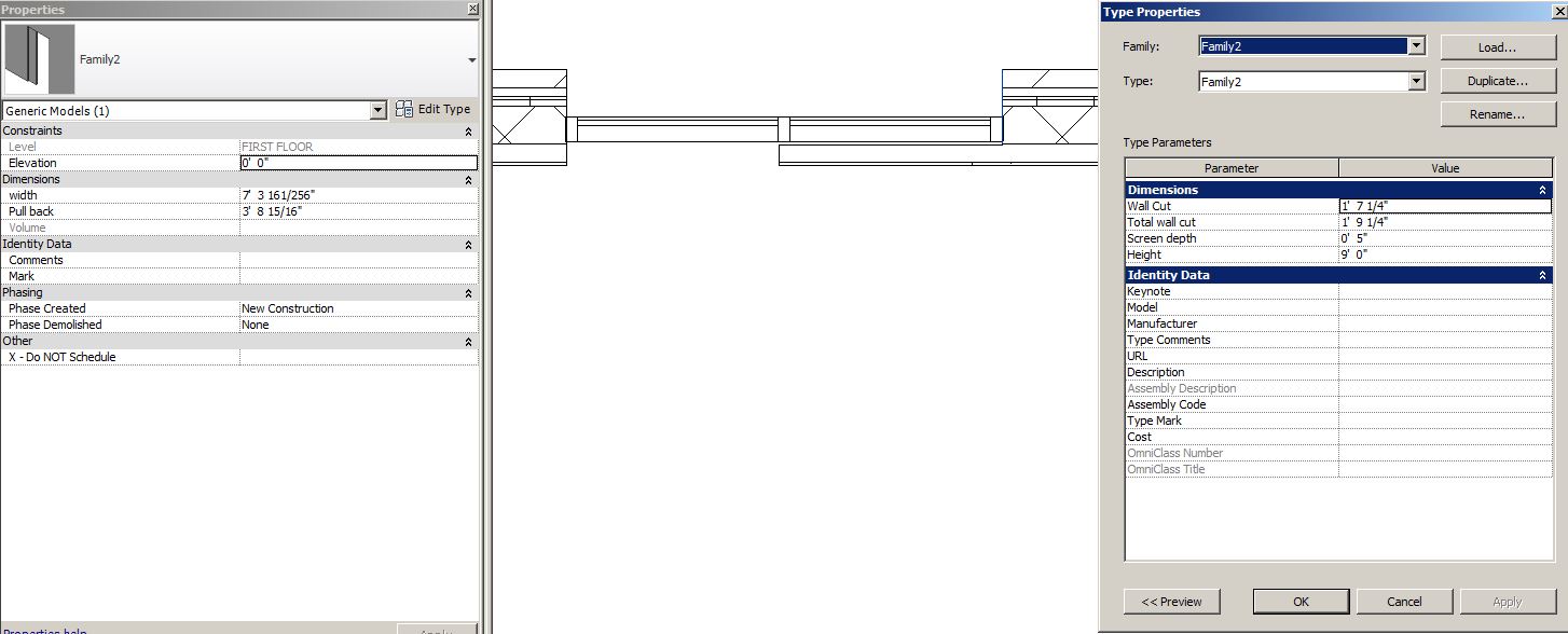 - I might do something like the second image. Here you can use either two walls or one wall. The CW is set to not automatically embed so now we need to cut the opening. I did so with a stepped opening that is parametric with some instance and some type variables.