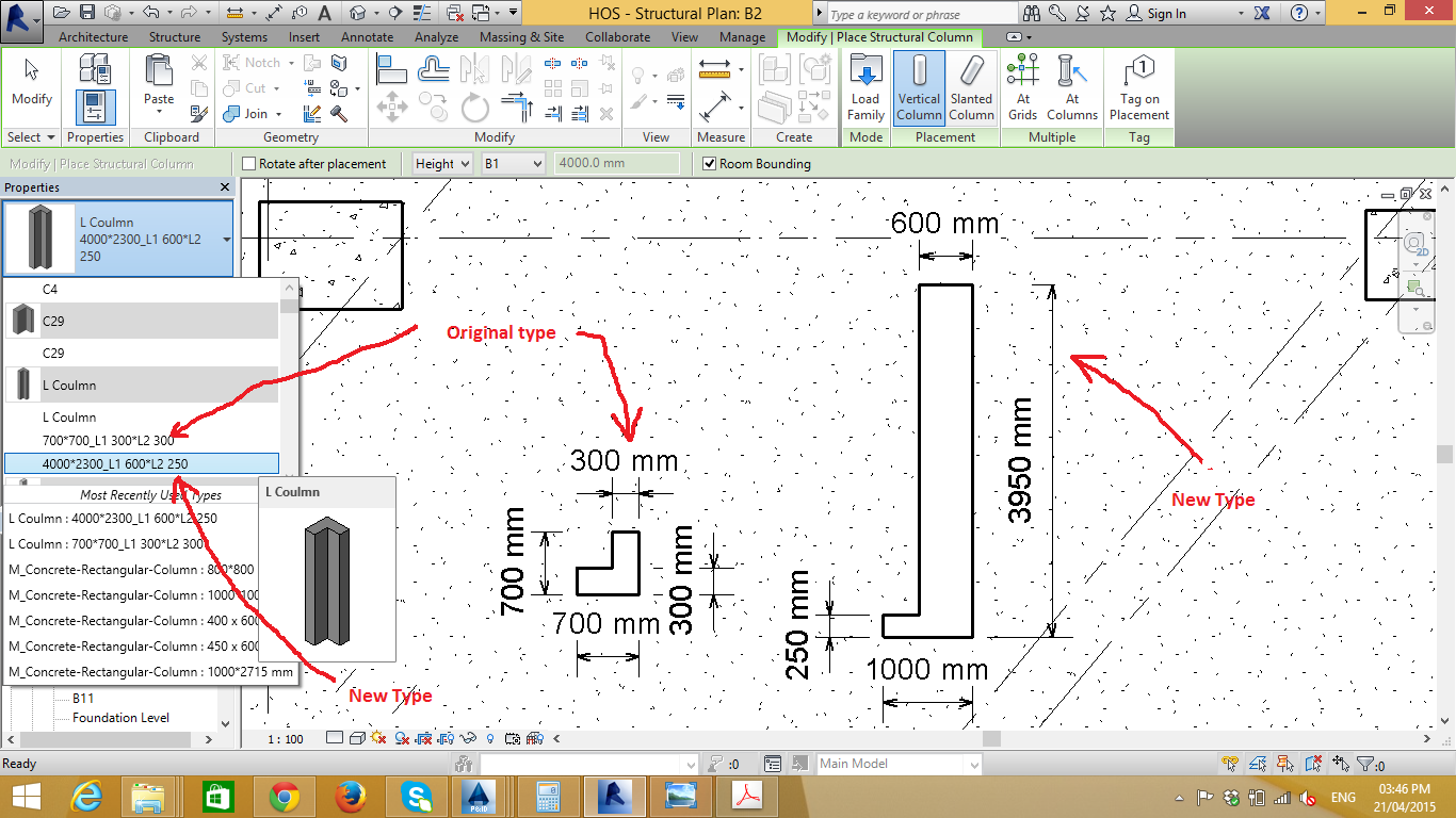 I have created L-column family with depth and width 700mm and with thickness 300mm. I added parameters for all its dimensions and loaded it into the project.. everything is alright till this moment. I wanted another L-column with different dimensions so I just duplicate the old type and changed the dimensions. the column placed with dimensions that differs from what I had input and from the original dimensions as well!!! Any ideas??!!!!!