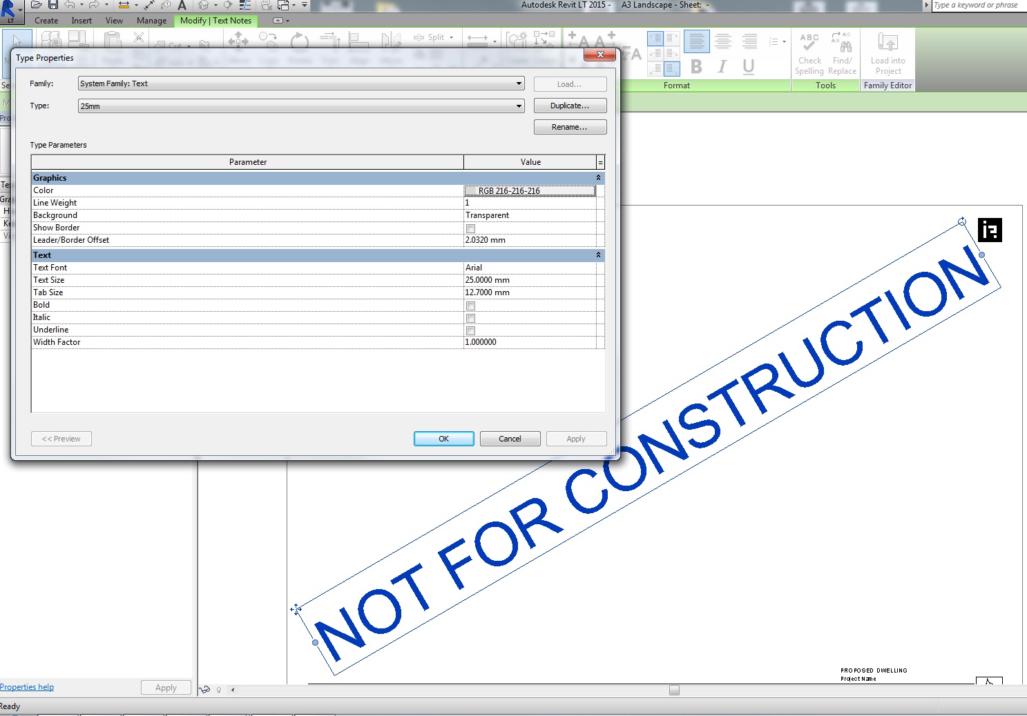 Hi Guys do you know how to make a watermark apprear behind the views placed on a sheet. I have the text on the A3 family page and set to translucent but it is covering the drawings see attached. Anyway of changing this?