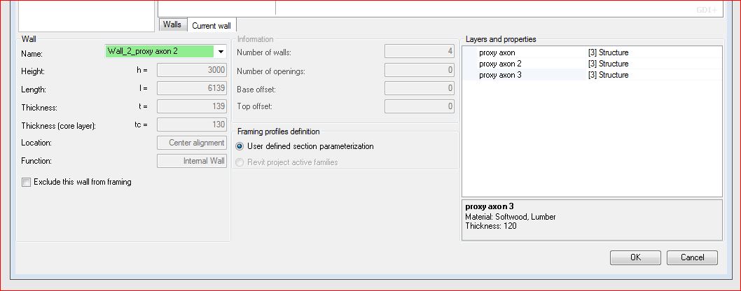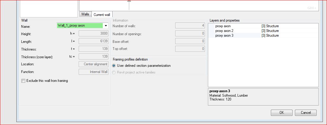 I'm learning how to use the Wood Framing Walls Extension in Revit 2014, and have run into some trouble regarding where it gets placed within the existing wall. The wood framing does only partially get placed within the wall, and therefore sticks out a bit on one side. I want to be able to choose the instance myself, or at least that it is placed inside the wall. Is there a way to control this, without manually correct it afterwards by moving the frame?