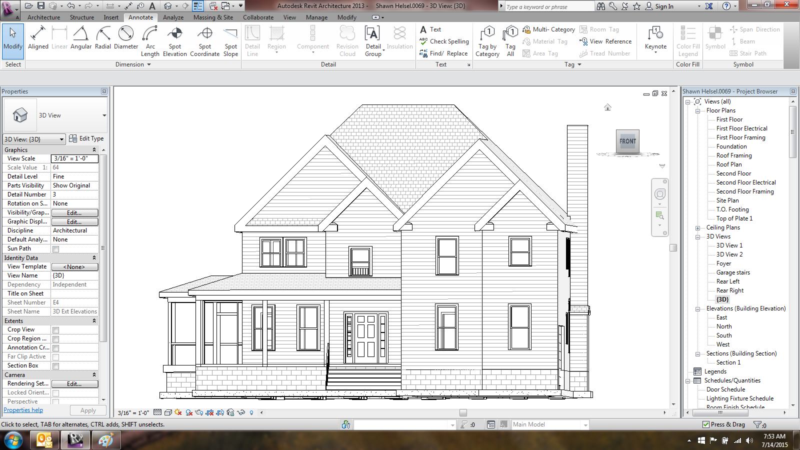 Does anyone know why the (3) 2x8 beam wont show in elevations but will in 3D?
