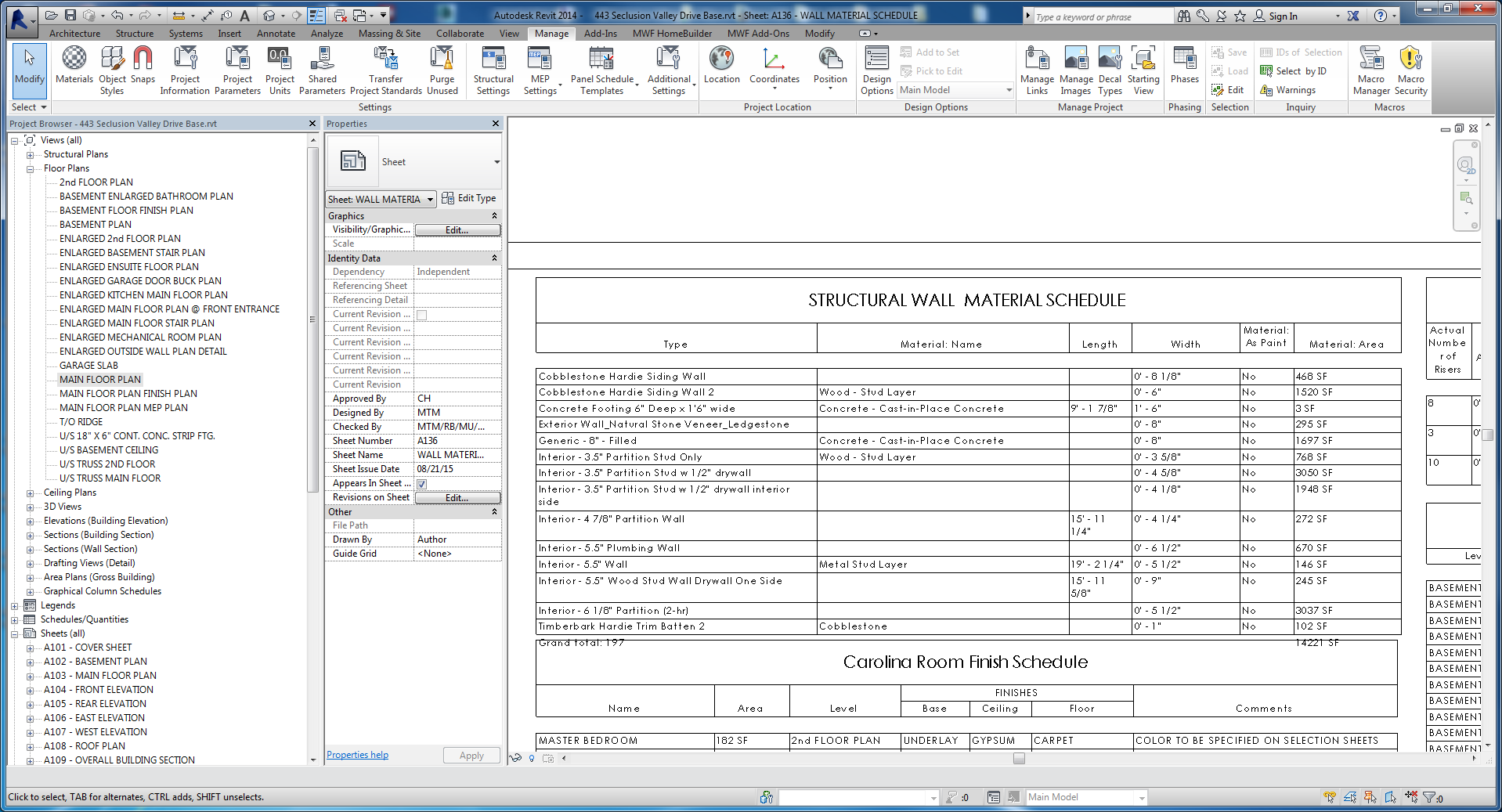 If you schedule the door panel however, it will show a default “Material: Area” of 45 SF [or 45.3 SF without any rounding].