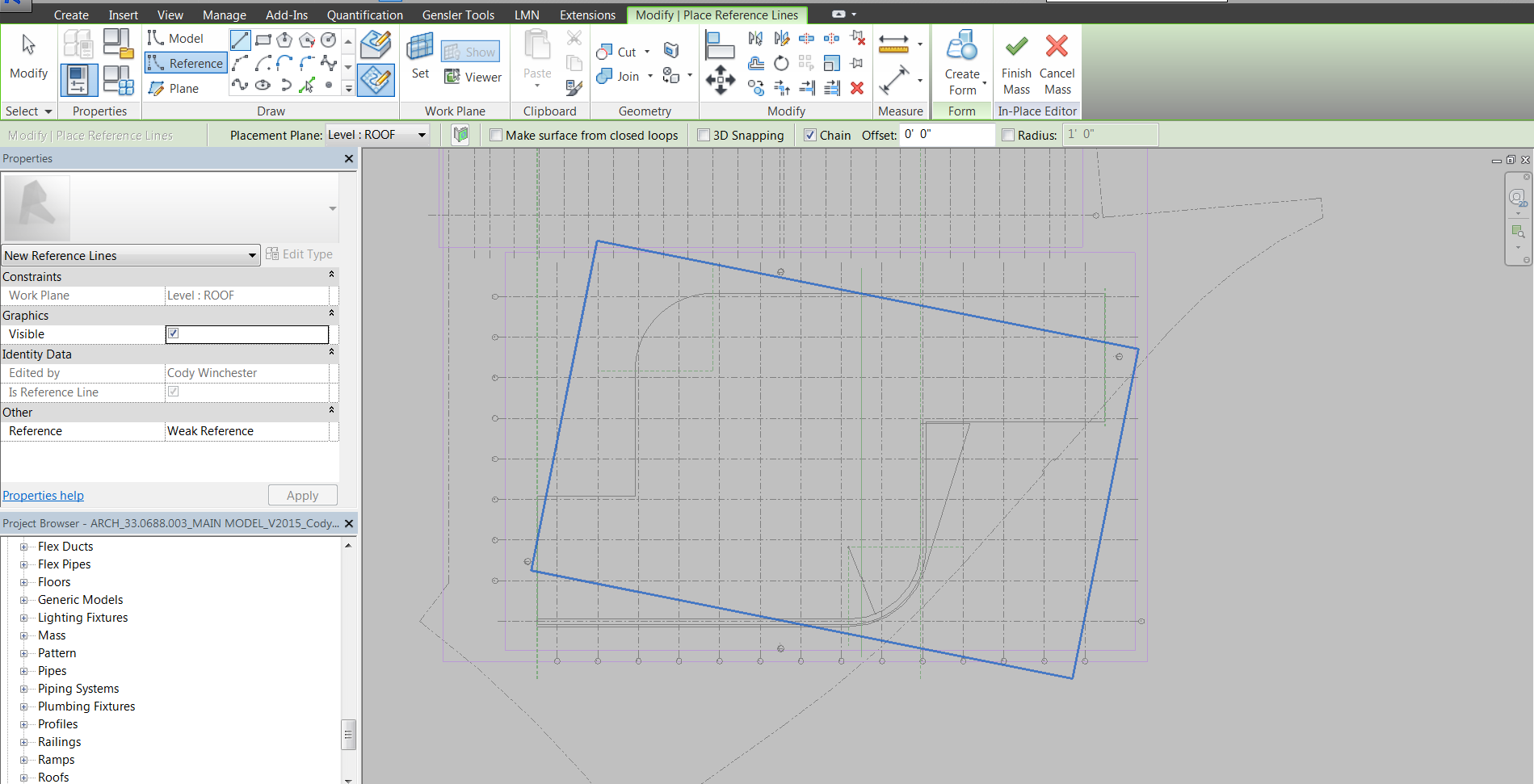 I'm noticing that my workplanes, when chosen for an in-place mass, are highlighting the floor level workplane relative to true north of the project. This is an isue when placing reference points since their axes relate to this orientation which presents a problem when setting up offset relationships. How can you change this? I'm not seeing any options presenting themselves since I'm already in a view oriented to Project North. Thanks.