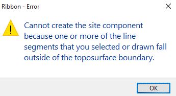 I've watched several tutorial videos on using the Site Designer plug in software. I built a simple topography in Revit. It doesn't matter if I try to build a street from existing model lines or draw the street on the topography, I keep getting an error message that says one of the line segments that I selected or drawn is outside the toposurface boundary.