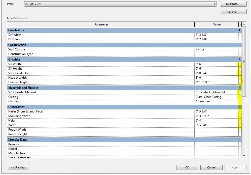 Hurdle #2 is now how the schedule reads this family. It recognizes the windows separately which is good. BUT, the Width category can only read the Width parameter from both the host and the nested family. The width parameter in the nested family is no longer relevant but it is still being read by the schedule.