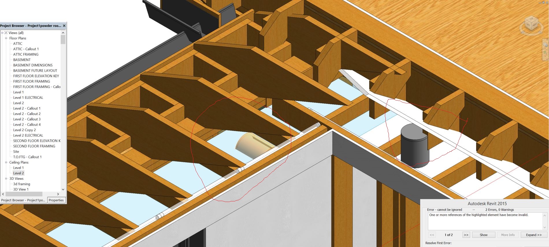 I'm using revut 2015. The attached image shows two issues. The first is that I'm having trouble putting a down light in a soffit. On two soffits, the downright go in fine, but on the other two soffits, the down lights go in rotated as shown. Also, I have easily trimmed the rafters with respect to the second red circle and now I need to trim the floor joists. The rafters are extrusions and they were easy to trim to fit the angled gypsum board ceiling. The floor joists currently extend too far (will be inside the living space). I know the carpenters won't build it as shown, but I want to show it properly. Anyone can help?