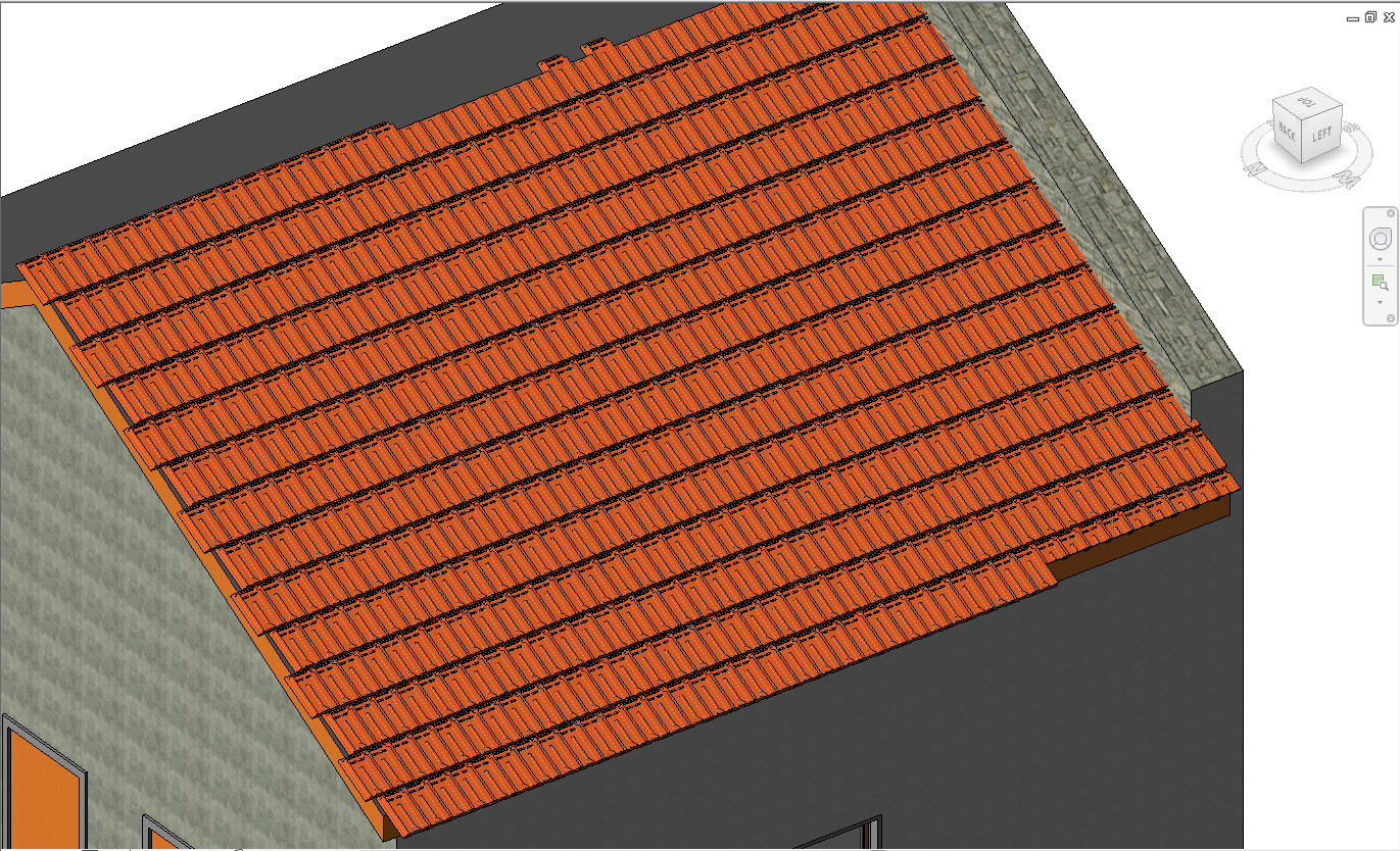 Hi, all! I've been trying to find a consistent way of modelling tiled roofs for some days, without success. There's the 3D way, with sloped glazings or adaptive families, which work ok most of the time, but the result is a very large and heavy model/file. Not practical for the huge rood areas I work with all the time. I have even tried modelling my own 3D French roof tile from scratch and built my own adaptive family, but results were not good enough (attached image with result [not a project, just some geometry I put together for a quick simulation]). As you can see the "cutting" doesn't work very well and the model is frustrating to work with. It gets particularly frustrating with this kind of tiles because of how they are connected to each other...