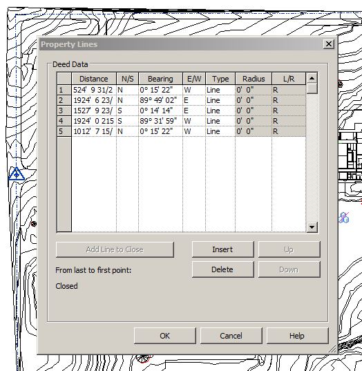 You said you had a site survey. A typical survey has a base point, all property lines using bearings and distance, and it may include topographical information. Under the massing and site tab is the property line tab. Using that, you can lay out the property according to the survey.