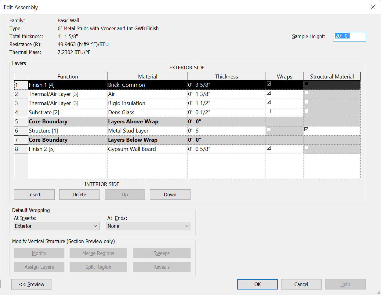 The wall is the metal stud, which is 7" back from face of brick. If i move the dens glass and insulation back into the core the "wrap" on the architectural column works.... kind of. It doesn’t wrap those objects - only the brick. The airspace ends up growing.