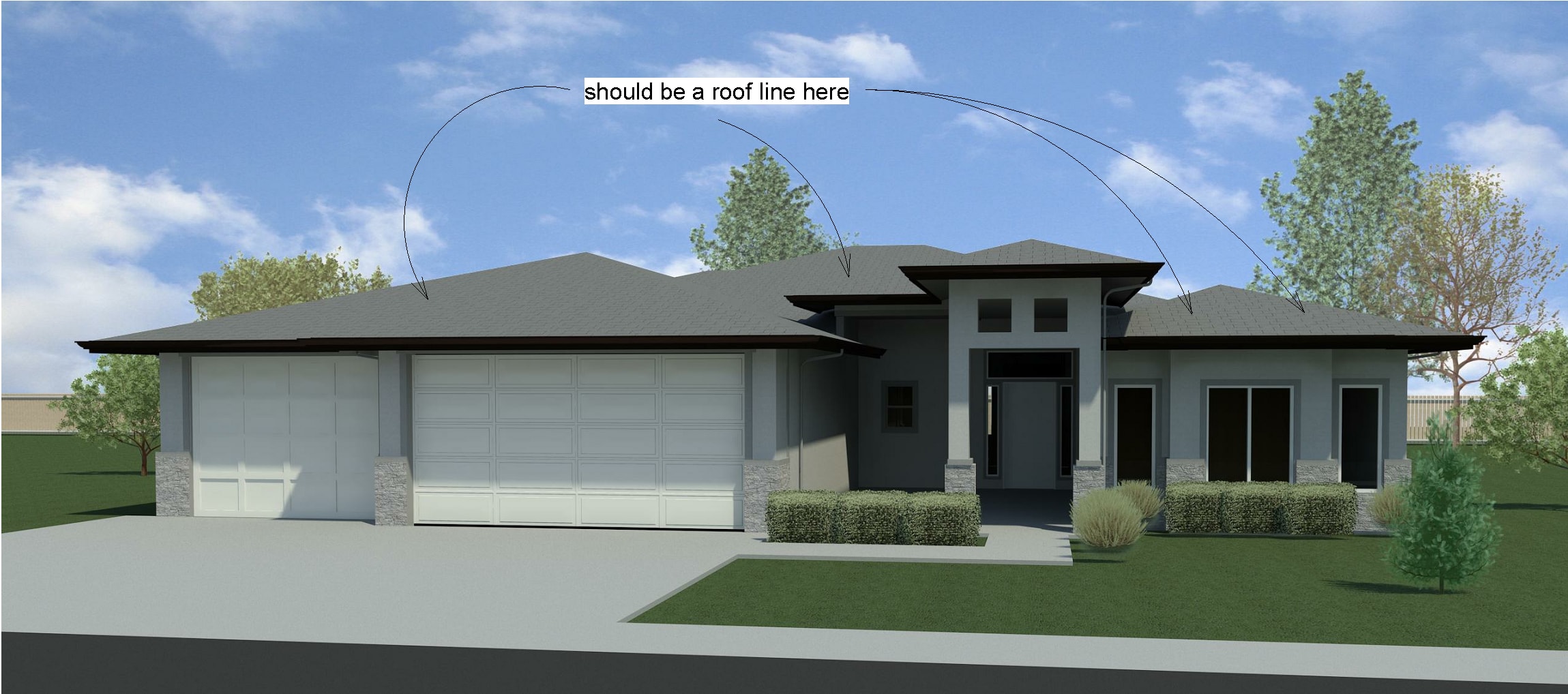 First time poster, long time lurker. I've been having some real issues lately getting certain exterior 3d views to render properly. I'm using RA 2016 and what happens is when I do a rendering (doesn't matter if its ray trace or mental ray) it blends my roofs together when I should be seeing ridge lines/depth. A small work around I've been using has just been to use annotate lines to highlight the ridgelines along the roof but it really does not look good and its pretty time consuming. I'm attaching a picture of one of my renderings to show what I mean. If you look there should be able to tell where one hip roof starts and the other one ends over the garages, also on the far right side of the house over the pop out, the roof line is not flat, it creates basically a double hip, but you can't see this... Normally I wouldn't worry about this, but these renderings are for flyers and it is one thing that the builder pointed out that he really didn't like. Any suggestions on what I should do to fix this would be great. It is a shingled roof and the texture I'm currently using on it is one of the preloaded autodesk textures (thermal.moisture.shingles.rectangle) I've tried a couple other textures and had the same problems with those as well. Anybody have any suggestions as to what I can do to fix this?