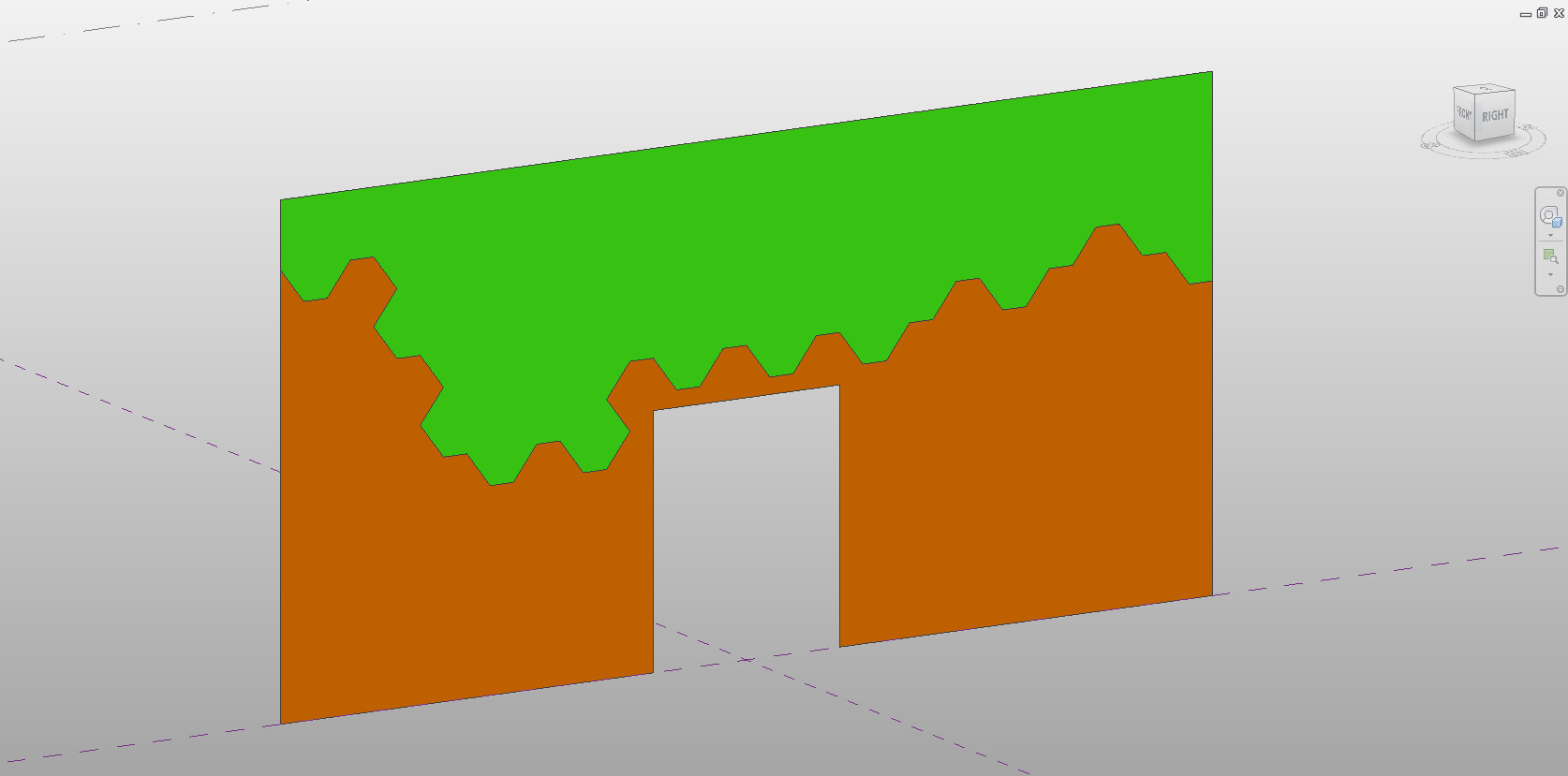 What I would like to do is to colour the mesh with 2 different colours front of the curtainwall so that I could draw a dividing line which follows the pattern.
