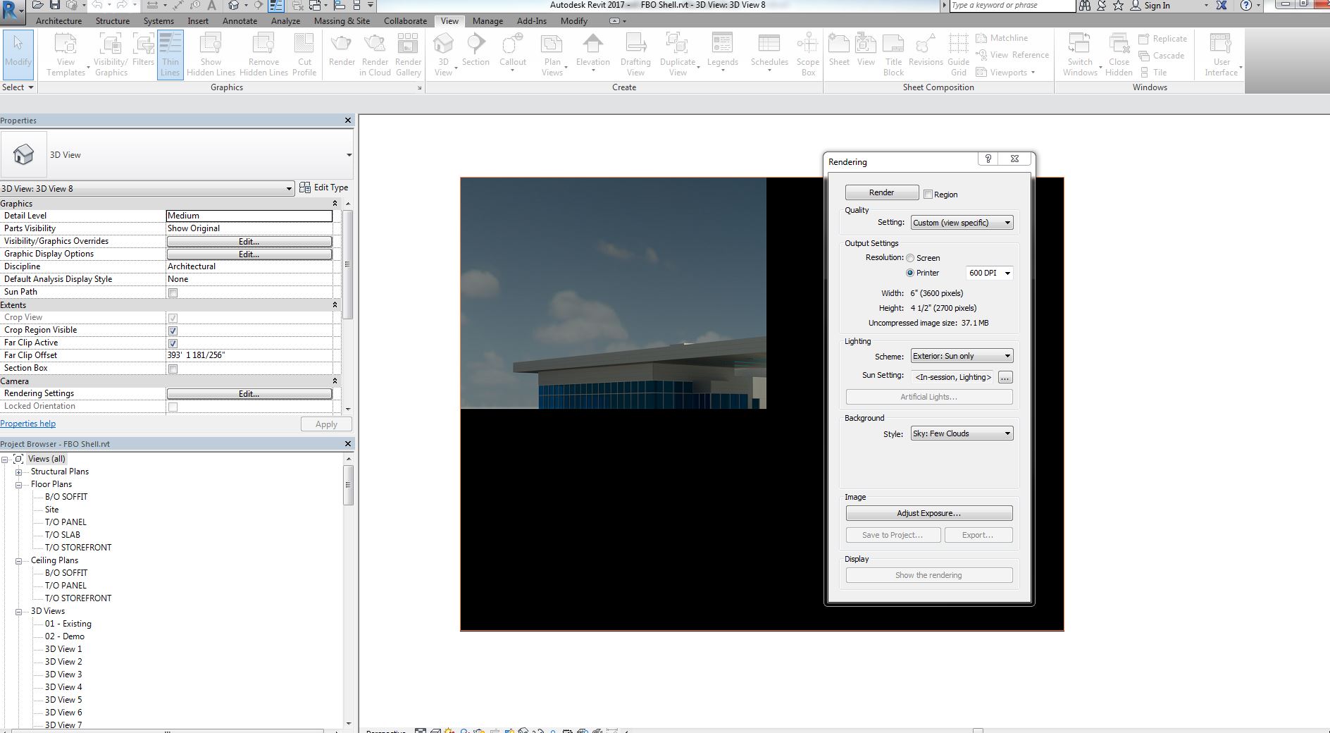 When I attempt to print to a printer resolution of 600 DPI Revit returns a rendering with 1/4 of the image present and the rest is solid black, regardless of how long I let it render. The attached photo is an example. Any ideas on how to get a higher quality rendering without the black quadrants? I seen a post on reducing the dimensions of the image and I made it less than 6" in both length and width to no avail. Thank you everyone for your help.