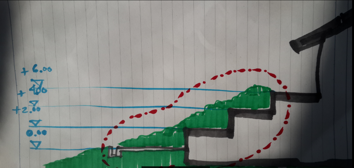 I'm looking for an answer to a topography issue with Revit. I'm trying to create a garden on top of the basement floor of the building (see photo attached).